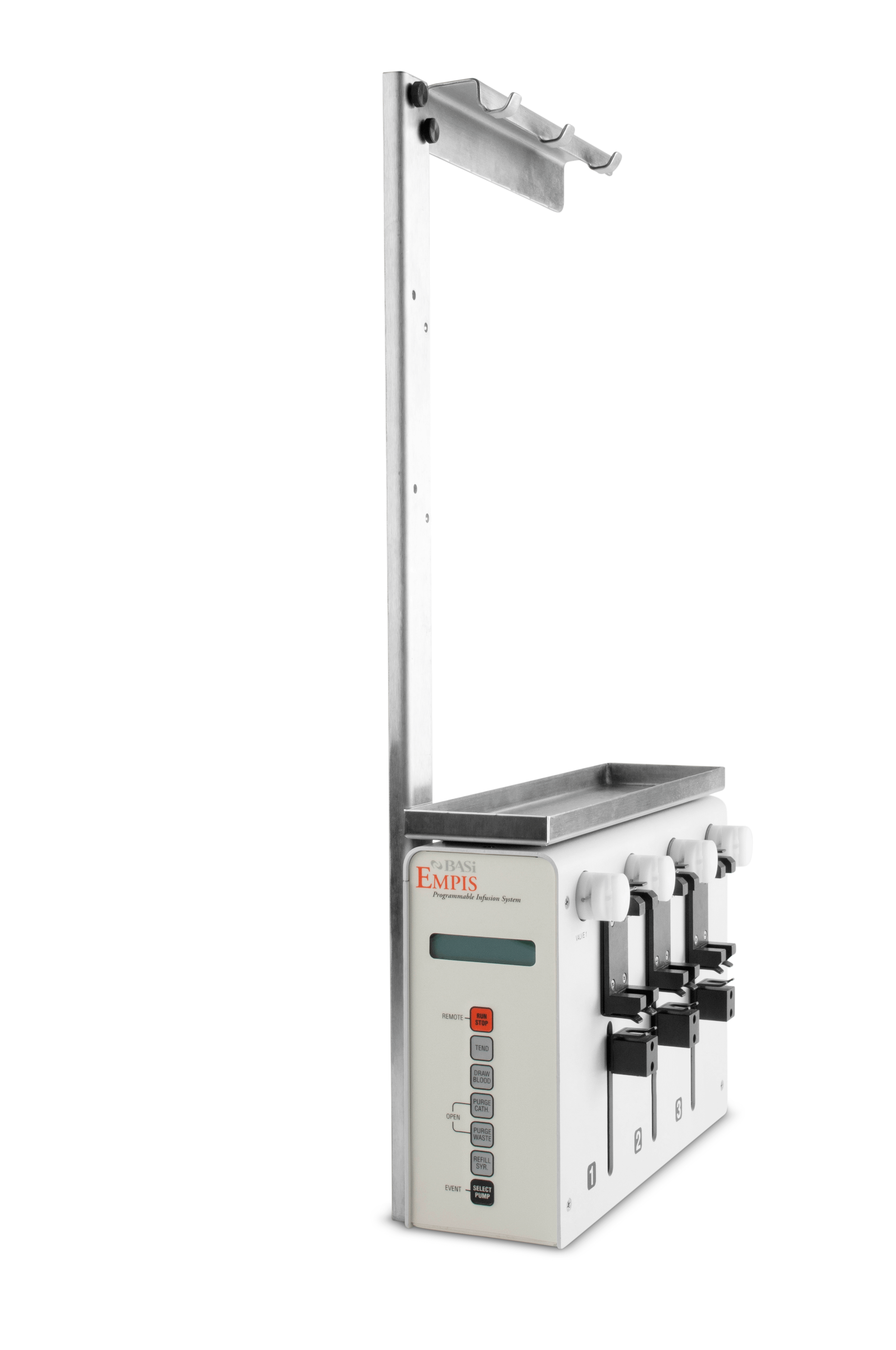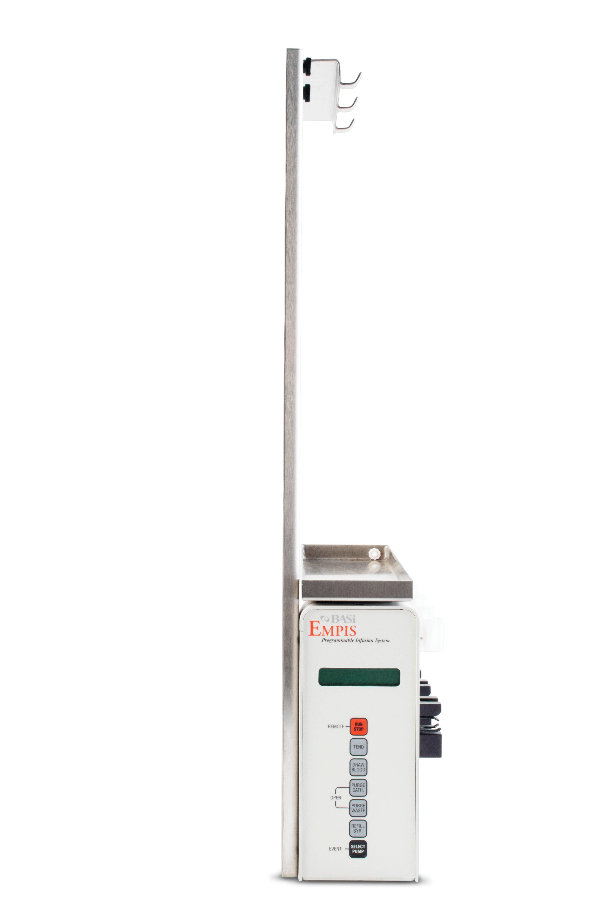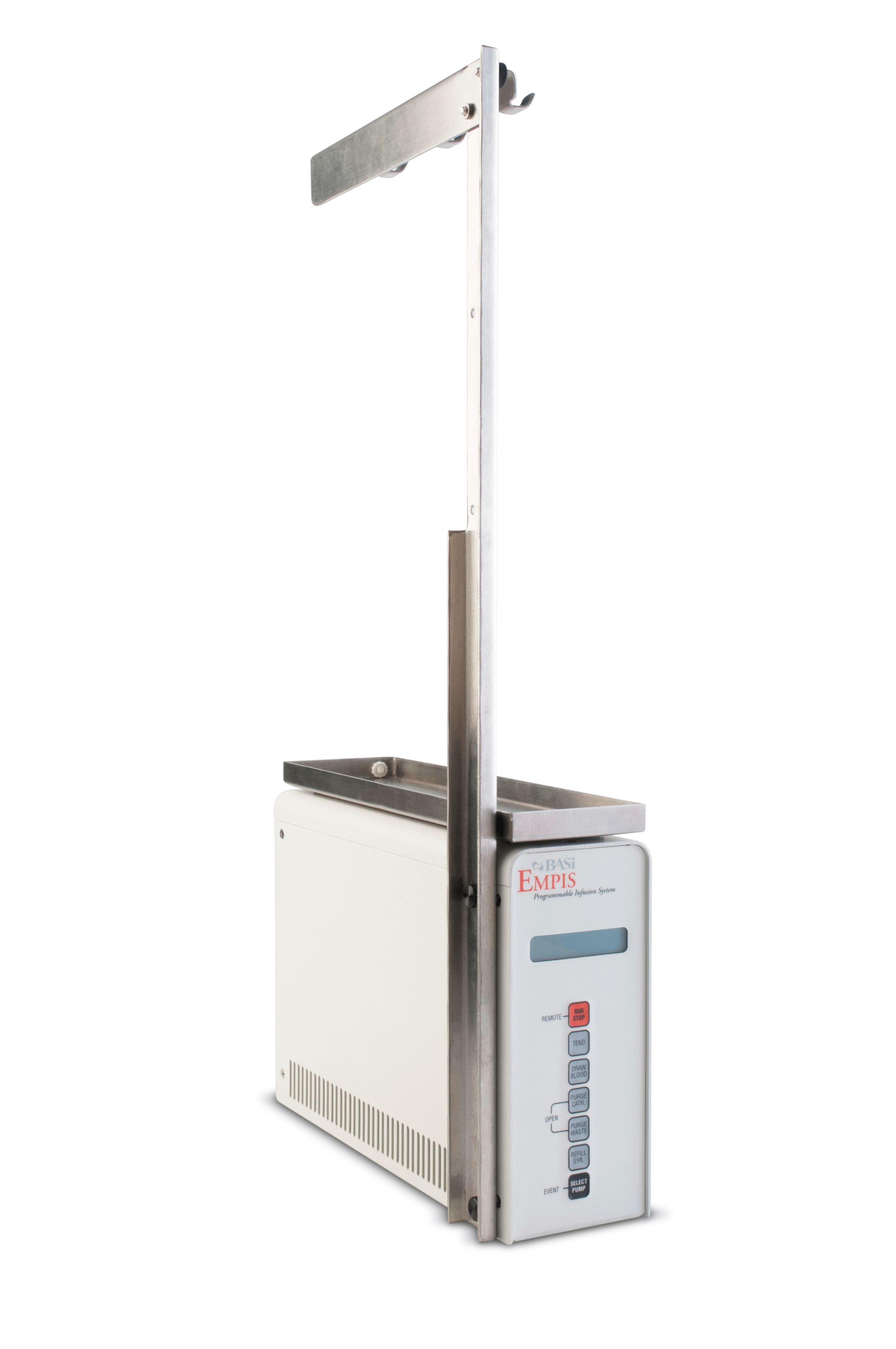 The Empis Automated Drug Infusion System is an automated dosing device that can be used alone or in conjunction with the BASi Culex® Automated In Vivo Sampling System. The Empis can be used in several capacities including drug delivery, perfusion device, and automated bile collection.