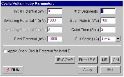 - Open a New Cyclic Voltammetry