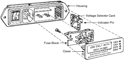 Orient the card so that the label for either 120 V or 240 V (do NOT use 100 V or 230 V) gets inserted first, with the writing facing towards your left. Slide the plastic indicator around so it nestles in the correct slot opposite the indicated voltage, then reinsert the circuit board. Install the cover and make sure that the correct voltage is indicated.