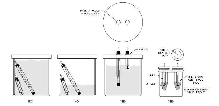 ONCE THE SHEATH IS REMOVED, STORE THE ELECTRODE TIP IN 3 M NaCl AS SHOWN BELOW.