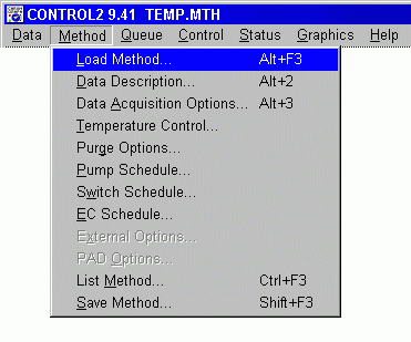 To load an existing Method, select the LOAD METHOD option from the Method menu at the top of the screen: