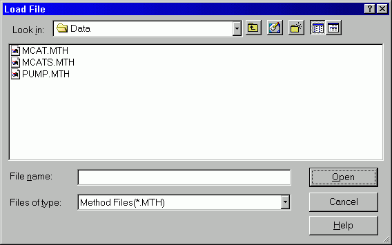To load a Method, either double click on its name or highlight it and click the OK button.