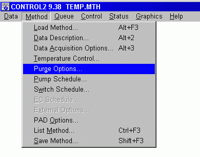 The PURGE OPTION screen can be accessed through the Method Menu or by clicking the <
