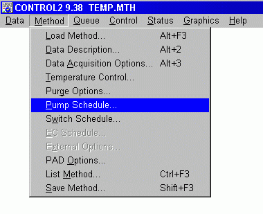 The PUMP SCHEDULE is accessed through the Method Menu or by clicking the <