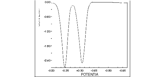 Another application familiar to all electroanalytical chemists is anodic stripping voltammetry. In this technique, the potential of the working electrode—usually mercury or mercury-coated graphite—is held at a sufficiently negative potential, typically -1.0 V vs. Ag/AgCl, while trace metals are deposited to form a concentrated amalgam of metallic atoms in the zero oxidation state. After a sufficient deposition period, the potential is scanned in the positive direction, and the metal atoms are characteristically stripped from the mercury into solution via a forced oxidation to their ionic states. The potential of each of these stripping reactions occurs at a value characteristic of the metal ion being analyzed (Figure 1.11). Note that all of these oxidation reactions are done at negative potentials versus the reference electrode implied.