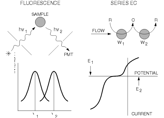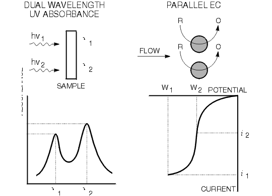 Figure 1.18. An analogy can be made between DUAL-PARALLEL amperometric detection and spectroscopic measurements. Enhanced selectivity is often the end result.