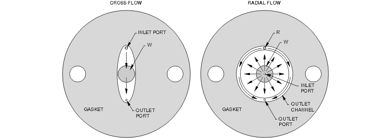 Figure 2.3. Flow patterns for cross-flow and radial cells.
