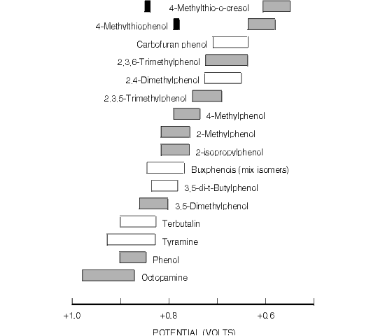 Figure 8.3. Oxidative Cyclic Voltammetric Data for Selected Alkylphenols of Environmental Interest.