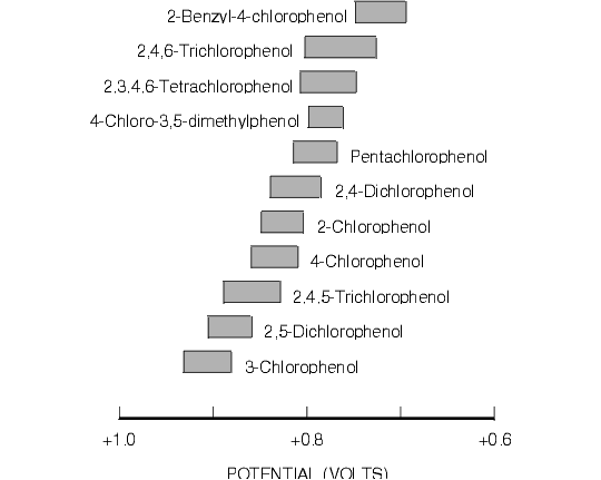 Figure 8.4. Oxidative Cyclic Voltammetric Data for Selected Chlorophenols of Environmental Interest.