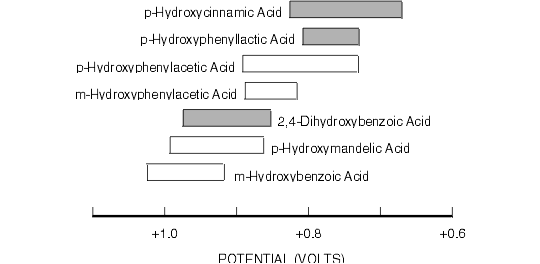 Figure 8.8. Oxidative Cyclic Voltammetric Data for Some Natural Phenolic Acids.