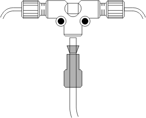The PM-80 is factory plumbed, and ready as received for final connection of the inlet and outlet solvent lines. Unwrap the PTFE tubing carefully and remove the protective cover from the solvent-uptake frit. The uptake tubing connects to the tee at the pump head with a flangeless fitting. Be sure to install this with the flat face of the ferrule entering the tee: