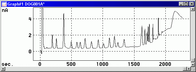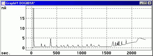FIXED SCALING allows you to specify the upper and lower limits for the Y (and less commonly, the X) scale. The figure below shows an improved graph of the same Data, achieved by using fixed scaling. The fixed scale is retained in RAM, so every subsequent Data file will be graphed on the same scale. The fixed scale can be saved for subsequent use by saving the REPORT.INI file.
