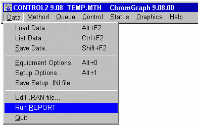 Alternatively, Report can be started (or brought to the forefront if it was minimized) by the 'Run REPORT' option under the Data Menu of Control.
