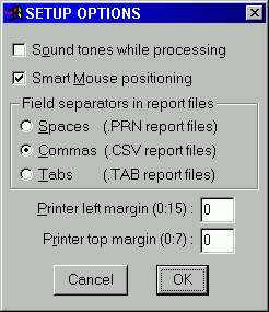 SETUP OPTIONS allows you to set some user preferences. This screen is reached as follows:
