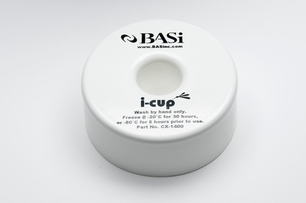 The i-cup is a portable, non-electric vial chiller used to refrigerate urine as it is collected and maintain it below 4°C throughout the day or overnight. It was developed for metabolic collections with the BASi Culex ® automated blood sampling system but can be used anywhere liquids need to be kept cold for extended periods.