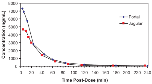 Sample in tandem from the portal vein and the jugular vein to obtain a clear picture of first-pass effects as the drug is metabolized first in the digestive tract and then in the liver. Take advantage of automated dosing using the Empis to avoid stressful human contact.